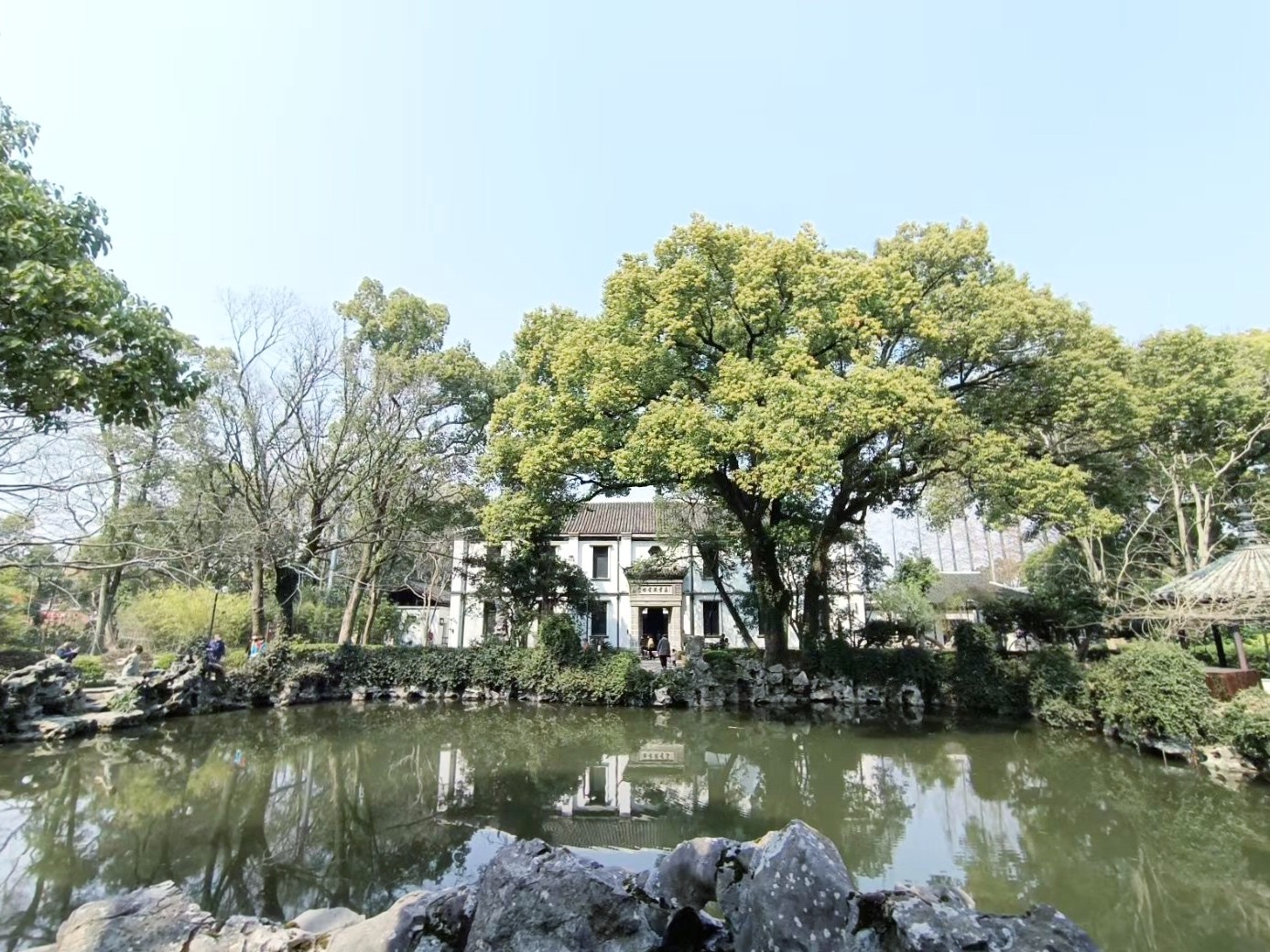 兩天的旅程,大家觀賞了南潯古鎮(zhèn)、下渚湖濕地、莫干山等景點(diǎn)。“泉聲飛百道,鳥徑仄千盤。” 莫干之美在劍池,劍池之美在飛瀑,山泉淙淙,泉水自懸崖陡壁飛瀉而下。站在劍潭邊上,仰觀瀑布,又是另一番景象,飛瀑臨空,珠飛玉碎;俯視劍潭,潭中煙巒兀立,樹影婆娑,似別有洞天。
